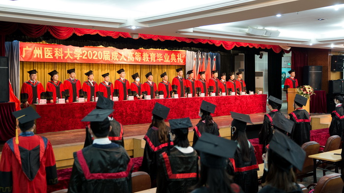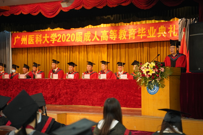 广医在线讯12月26日上午,学校在越秀校区举行2020届成人高等教育毕业典礼。学校副校长胡丙杰、相关职能部门及学院负责人出席典礼。典礼由全科医学与继续教育学院院长纪泽泉主持。2020届成人教育毕业生通过现场及线上的方式参加了典礼。