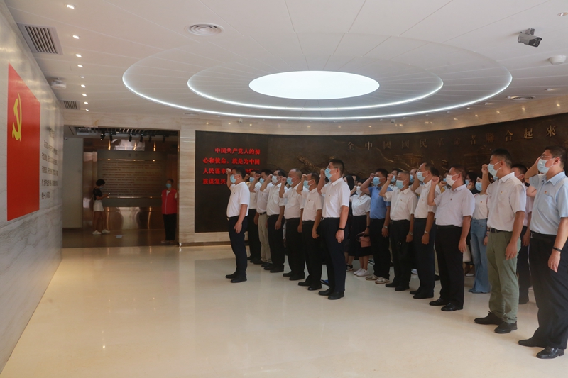 2021年8月3日,中共三大会址纪念馆,学校党委书记唐小平带领处级干部暑期党史学习教育培训班成员重温入党誓词