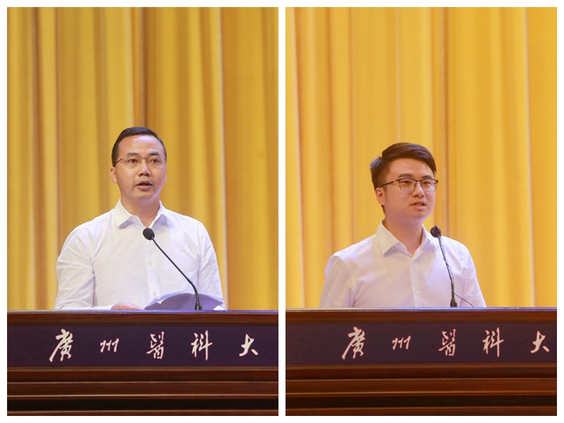 第一临床学院临床医学专业胡颖虹同学和肿瘤学博士研究生李坚福同学分别代表本科、研究生新生发言。